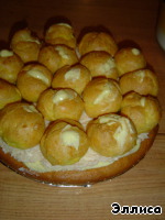 Когда у нас все подготовлено, приступаем к сборке. С помощью кондитерского шприца наполняем профитроли заварным кремом,