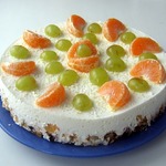 Поставить торт в холодильник на ночь. Утром украсить бока торта хлопьями, верх - ягодами и фруктами.