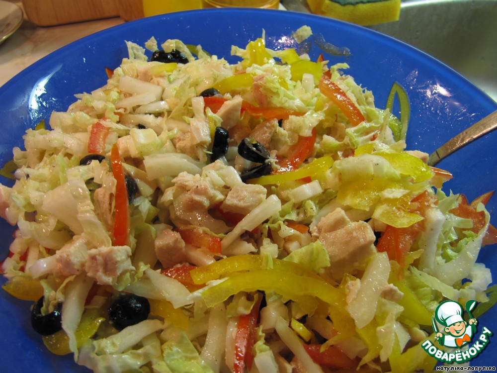 Этот рецепт был размещен на сайте в апреле 2008 года пользователем "окса" под названием "Салат "Шик" и иллюстрирован мной в рамках акции «Раскраски».