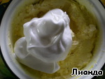 2 белка взбить с 50 г сахара и аккуратно соединить с творогом. -