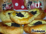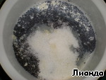 Творог смешать с маслом, 100 г сахара, 2 желтками, крахмалом. Я пользовалась блендером.