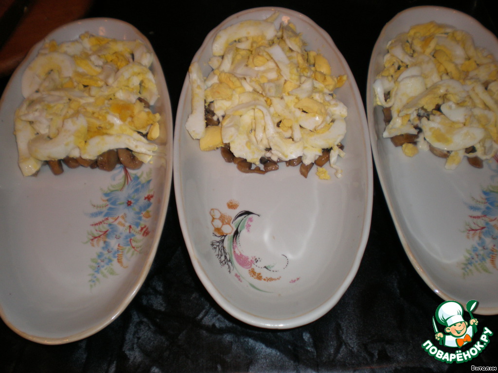 Грибочки жареные - 1 слой, все слои смазывать майонезом