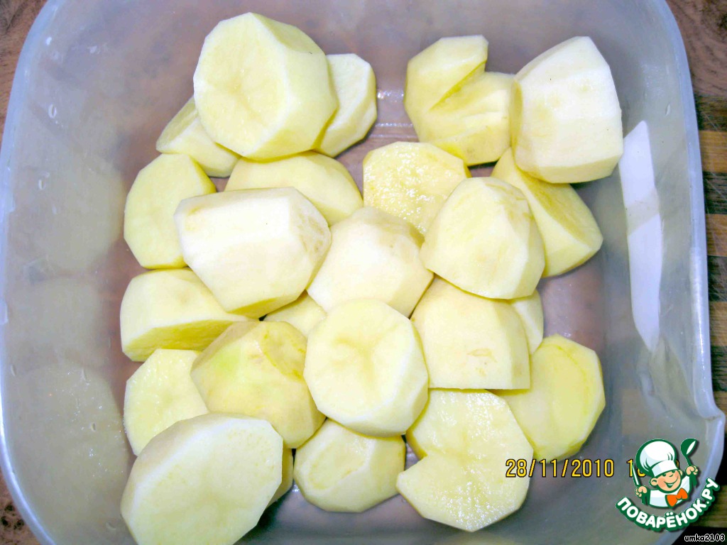 2. Картофель чистим, моем и нарезаем крупными кусками.