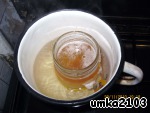 5. Мед, если он как и у меня засахаренный, растапливаем на водяной бане.