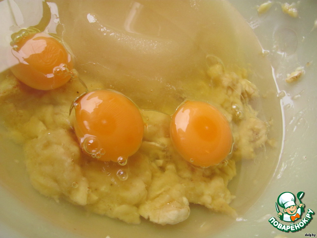 - Банан (мякоть, размятая вилкой) — 300 г