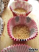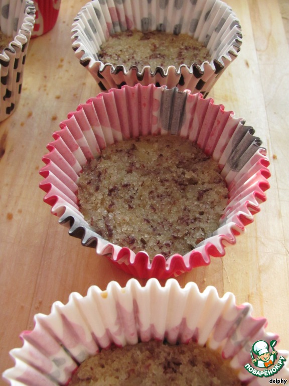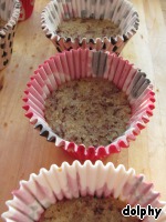 Теперь можно собрать наши пирожные, для чего нам пригодятся бОльшие формочки. Если ваши формочки не из силикона, выстелите их пленкой.