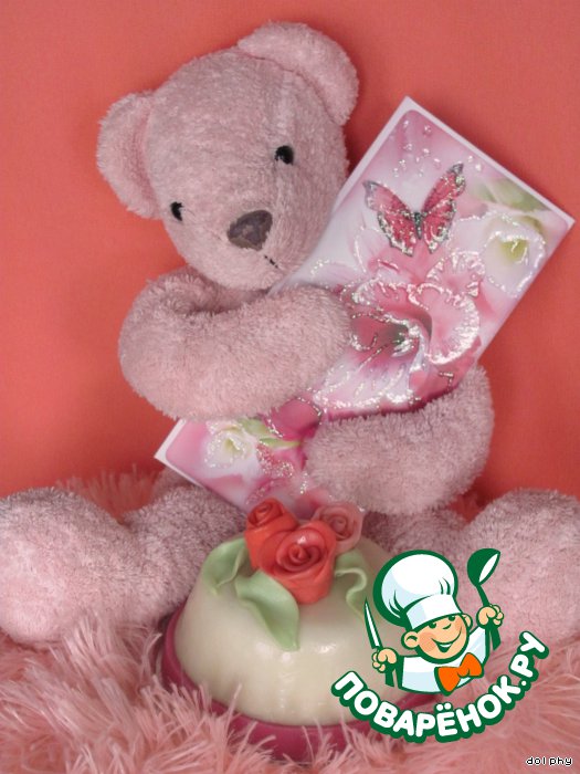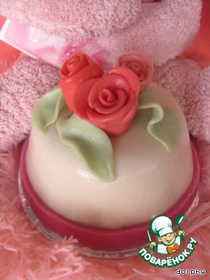 Я украшаю пирожное мастикой, способом приготовления которой решила не перегружать этот рецепт. На сайте очень много вариантов приготовления мастики и украшений из нее - повторяться не хочется.