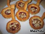 Вымешиваем гладкое, эластичное тесто, оборачиваем пленкой и убираем в холодильник на час из подготовленного раскатанного в пласт теста вырезаем кружочки, которые станут корзиночками (черпачками) |