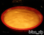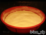Бисквитное тесто вылить в приготовленную форму, выровнять поверхность и СРАЗУ поставить форму на решётку в умеренно нагретый духовой шкаф. -