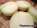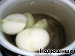 Ставим на огонь 3-х литровую катстрюльку для нашего супа. Пока вода закипает, режем луковицы пополам.