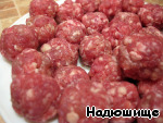 Пока суть да дело, достаем фарш и формируем из него маленькие фрикадельки.