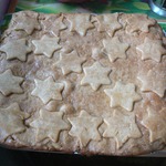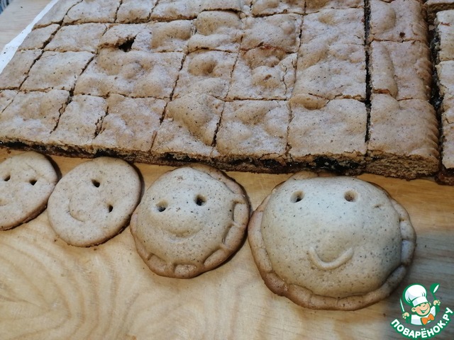 Я поступила следующим образом: раскатала первый корж. Затем верхней частью разъёмной формы вырезала круг, выложила на него густое сливовое повидло, и затем выложила второй пласт теста. Разъемной формой точно по контуру первого коржа вырезала излишки теста, нажимая на форму. Таким образом, если весь этот процесс проделать на пергаментной бумаге можно с успехом избежать какой-либо деформации пряника.