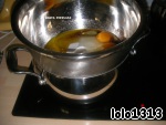 Тесто: сахар, яйца, сливочное масло, соду, корицу, мед перемешать и поставить на водяную баню на 10 минут, мешать до образования однородной массы.