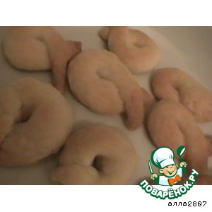 Разделить на мелкие шарики. Получается где-то 64 шт. Чем мельче шарики, тем больше бубликов. -