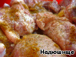 Затем бедрышки солим и густо посыпаем смесью специй. Руками распределяем специи по всей поверхности каждого бедрышка.