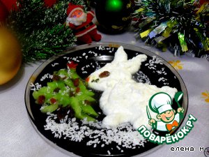 Глазки зайчонку делаем из изюма, носик из маленького кусочка яблока.