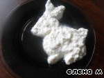 С помощью кондитерского мешка выкладываем десерт на блюдо, придавая форму зайчика.