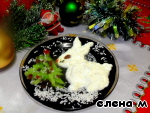 Глазки зайчонку делаем из изюма, носик из маленького кусочка яблока.
