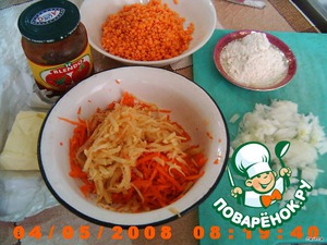 Поставить варить чечевицу, когда вода закипит, кладем морковь и картошку (я их натираю на терке), соль. -