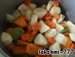Нарезать картошку и тыкву кусочками,