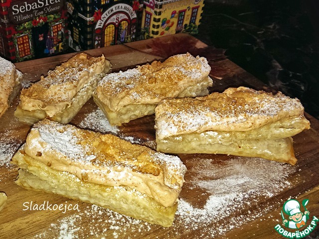 - Тесто слоеное бездрожжевое (1 упаковка) — 450 г