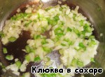 В кастрюле с толстым дном растапливаем сливочное масло и обжариваем на нём мелконарезанный черешковый сельдерей и репчатый лук.