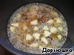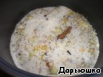 Заливаем водой. Закрываем крышку. Устанавливаем режим "Плов".
