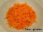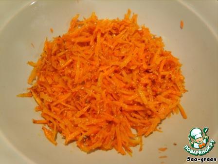 Морковь натереть на терке для корейской моркови, обжарить на сковороде. Добавить столовую ложку зерен горчицы, перемешать и подержать на огне еще пару минут.