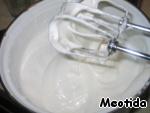 взбиваем яичный белок с ванилином, постепенно добавляем сахар и взбиваем до крепких пиков -