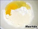 венчиком взбиваем до однородности яйцо с крахмалом и сахаром -