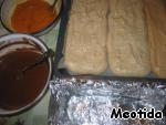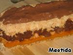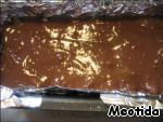 Переворачиваем готовый торт-пирожное и сверху равномерно поливаем оставшимся шоколадным кремом, ставим в шолодильник, чтобы крем слегка затвердел.