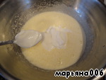 Затем добавить сметану и продолжать взбивать до гладкости.