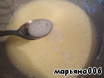 Поставить на маленький огонь и проварить с момента закипания 5 минут, интенсивно помешивая.