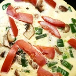 Когда помидоры немного обжарятся, залить яичной смесью, накрыть крышкой и довести до готовности.