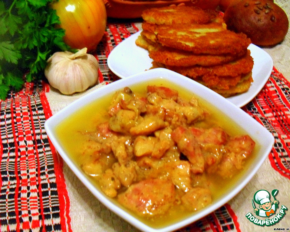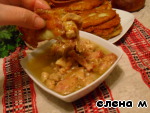 Сворачиваем драник пополам, макаем в мисочку с мачанкой, захватывая кусочки мяса.
