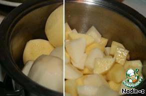Картофель очистить и нарезать средними кубиками, посолить по вкусу -