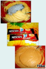 Для вкуса и цвета высыпала два пакетика растворимого кофе (3 в 1). Хорошо перемешала. Цвет мне понравился.