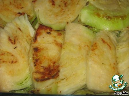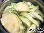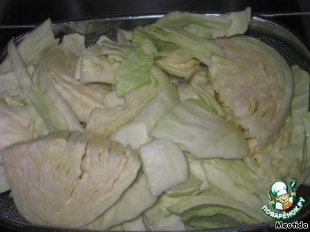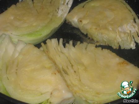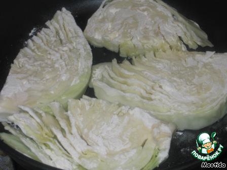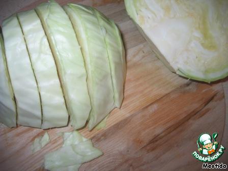 Кочан капусты разрезать вдоль пополам, а каждую половину поперек ломтиками толщиной с палец
