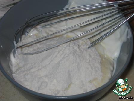 Сметану смешиваем с солью и 2 ст. л. муки.