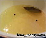 В кастрюле смешать вино, воду, лимонный сок и растительное масло. Добавить соль и сахар по вкусу (по моему вкусу получилось по 1 ч.л. того и другого). Затем положить лавровый лист, перец, довести до кипения и варить на медленном огне 3-4 минуты.