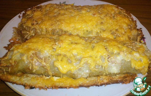 Достать, посыпать тертым сыром, отправить в духовку до расплавления сыра.
