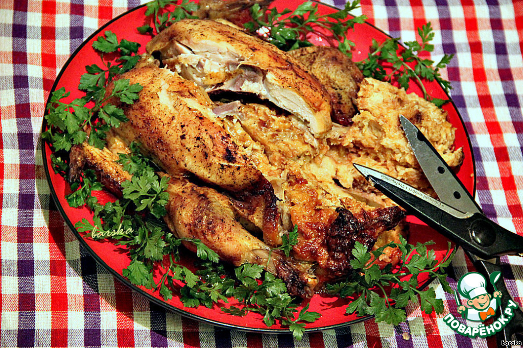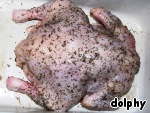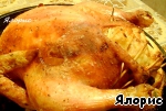 Курицу натереть солью, перцем и приправами внутри и снаружи.