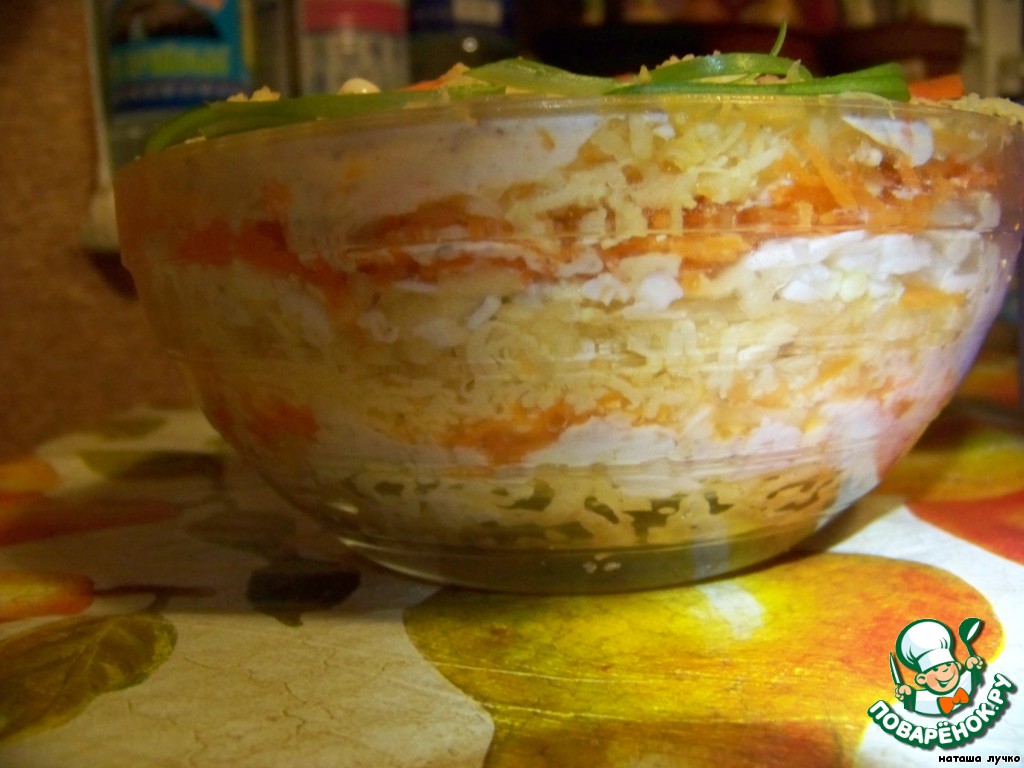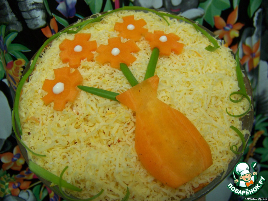 Дальше - 2 яйца, на крупную тёрку + майонез