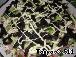 Салат выкладывать слоями на широкое блюдо! После каждого слоя делать "сеточку" из майонеза. НЕ СОЛИТЬ!