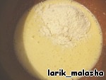 Выжать сок половины лимона, добавить туда примерно 1/3 ч. л. соды, добавить в тесто. Вылить в форму. Печь в форме, застеленной бумагой, около 10-15 мин. при температуре 190 градусов.