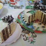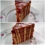 Со второй половиной теста поступить так же и после выпечки каждый корж разрезать на четыре полоски. Коржи пекутся настолько быстро, что я не успела даже взбить крем - сметану с сахаром. Ладно, пусть остывают, займемся кремом