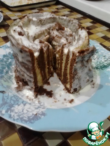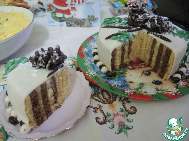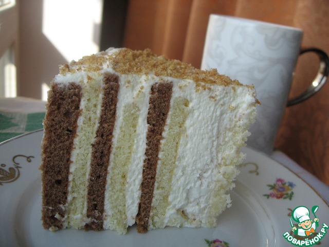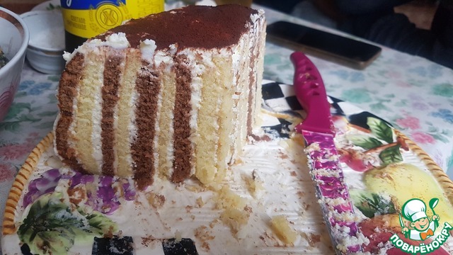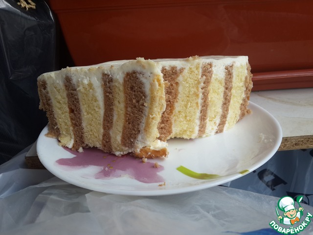 И полоску. Не думаю, что кто-то будет повторять, так как торт достаточно хорошо обмазать кремом и присыпать какао, поэтому не останавливаюсь на этом подробно