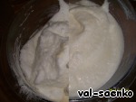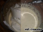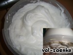 Взбить добела желтки со стаканом сахара, добавить 1/3 часть взбитых белков и хорошо перемешать.