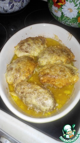 Довести зразы до готовности в горячей духовке при температуре 220 градусов примерно 15 минут (можно один раз перевернуть, чтобы не высушился кляр).