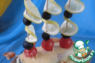 • Порезать рыбу на небольшие куски, посолить, поперчить, сбрызнуть лимонным соком.